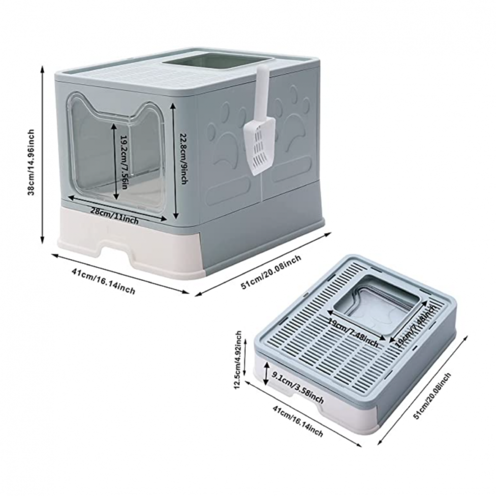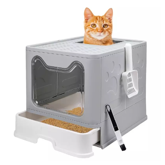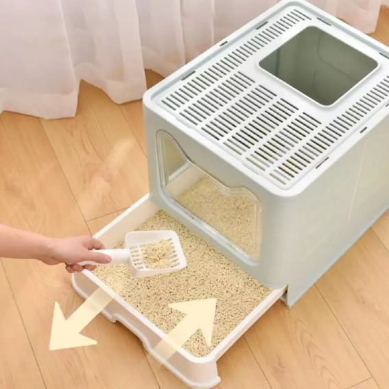 ليتر بوكس مغلق كبير مزود بدرج لتنظيف الرمل بسهولة مع مجرفة - متوفر بعدة الوان @
