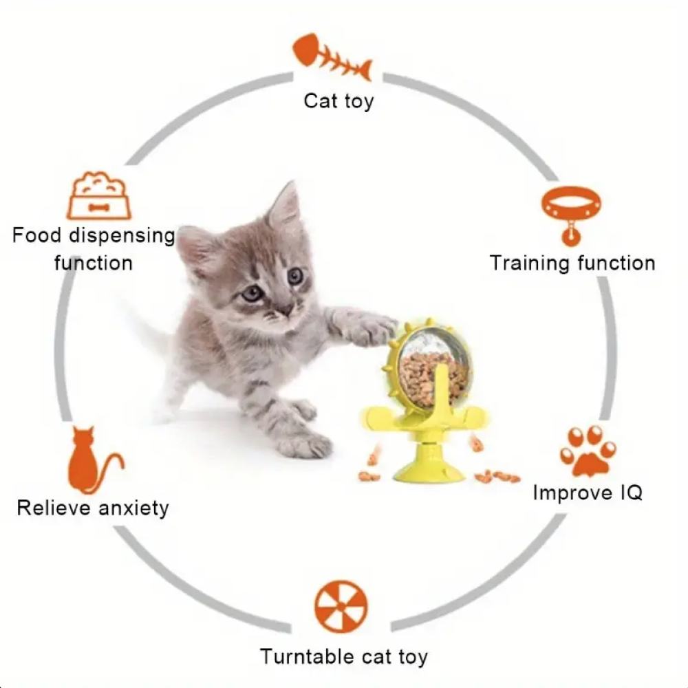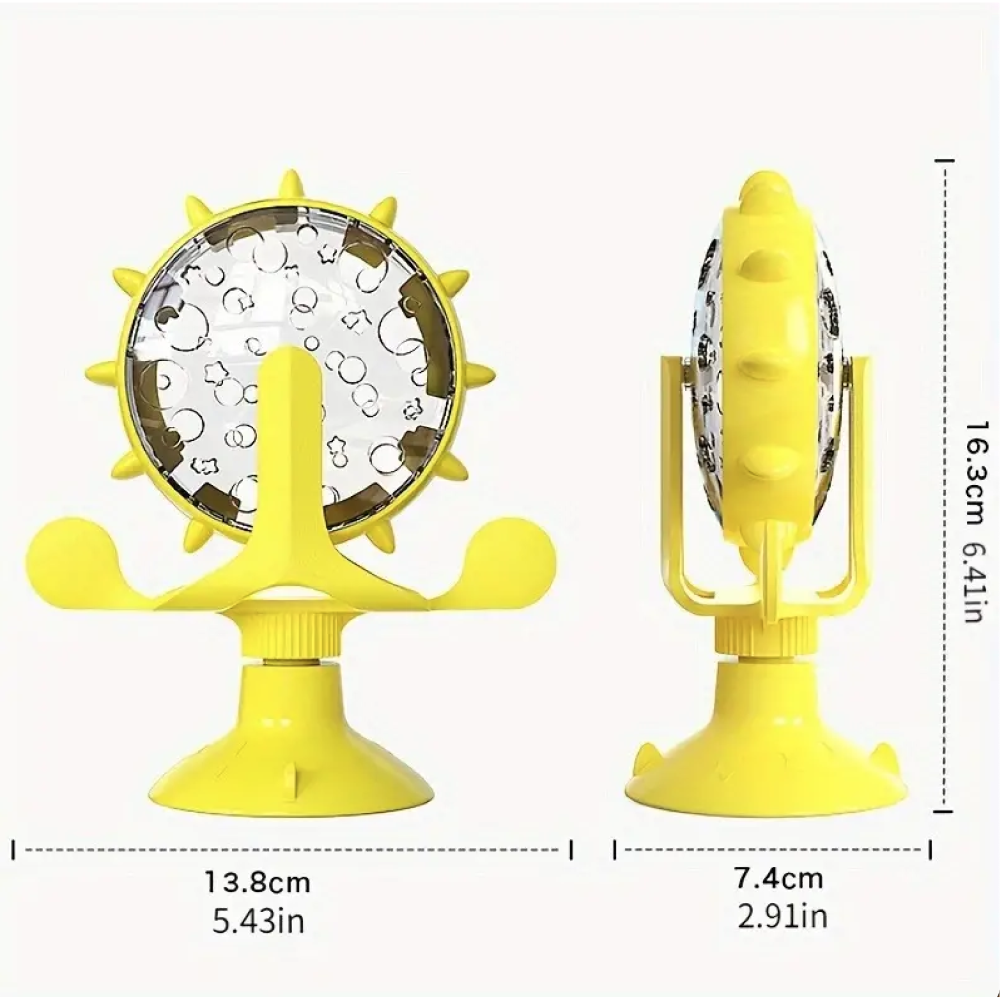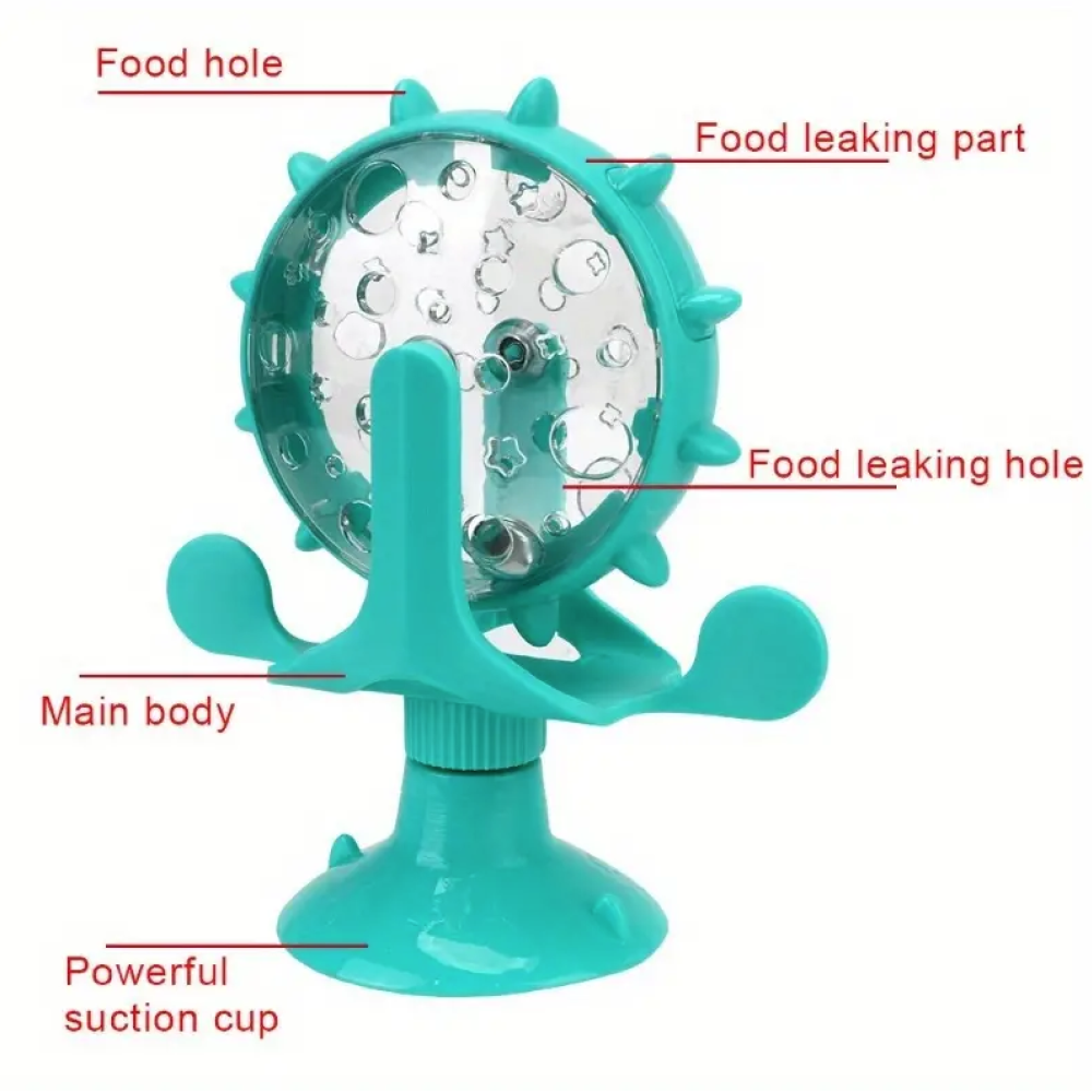 Interactive Cat Dog Toy Slow Revolving Windmill Treat Dispenser Bell Decor Suction Cup Base Made of Durable Plastic Material for Pet Attraction and Fun